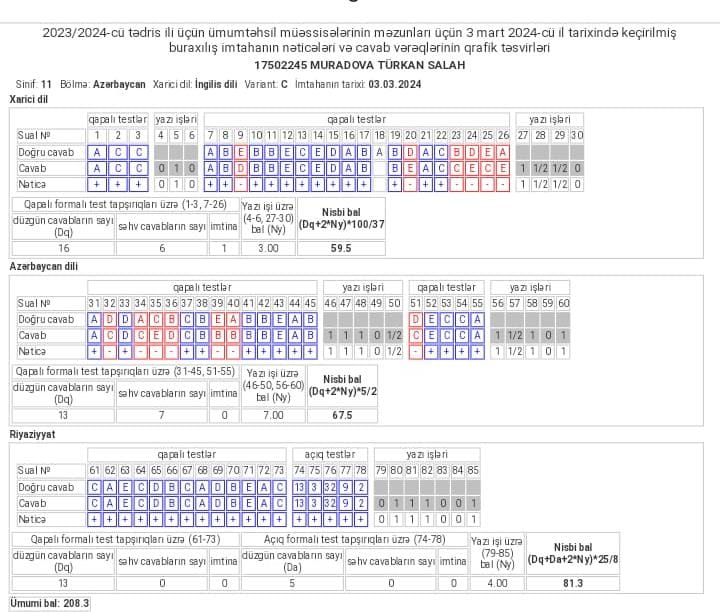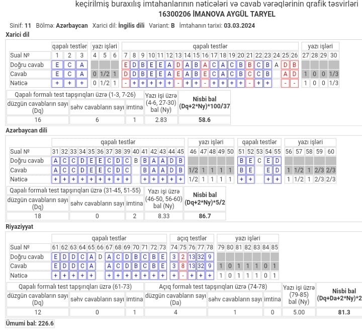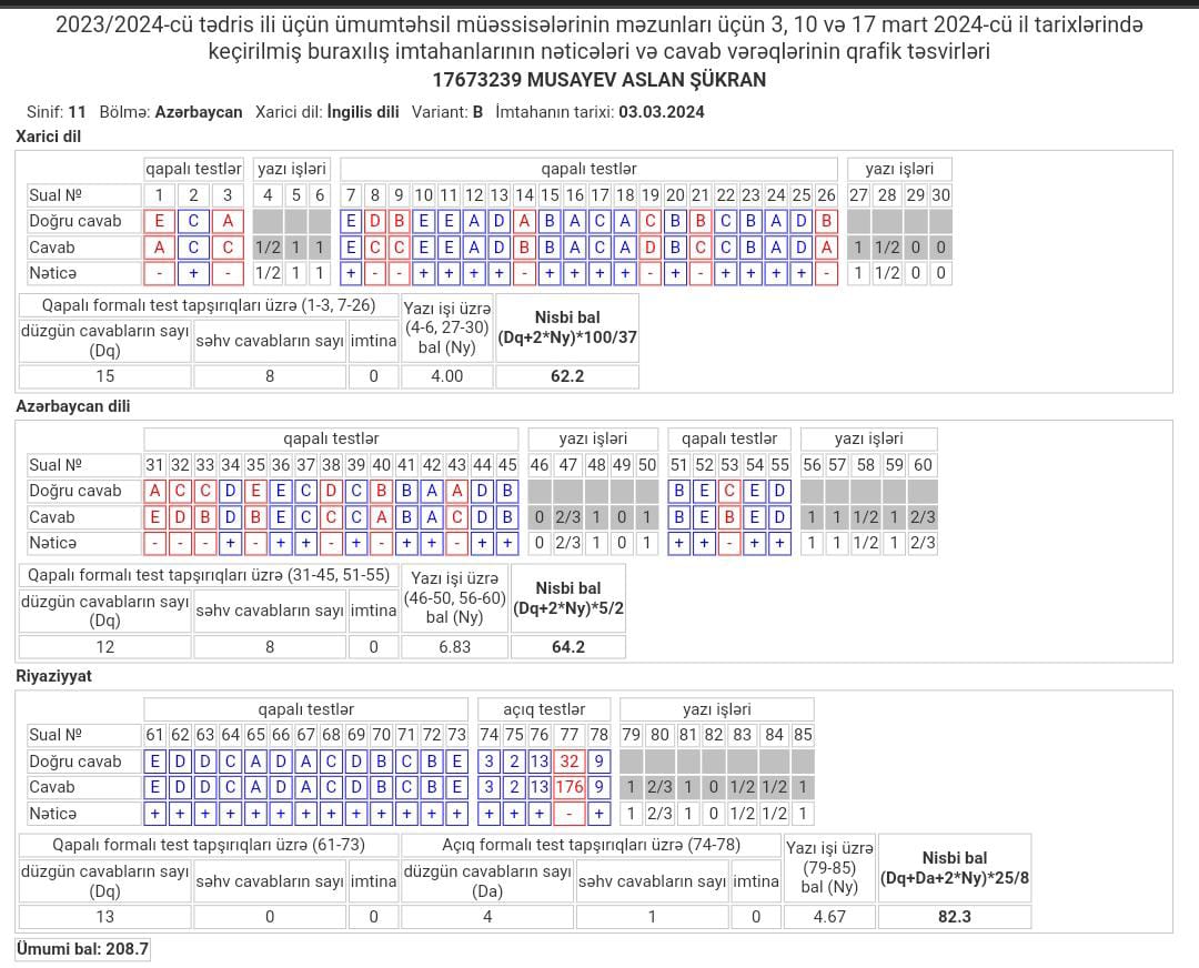 Keçirilən bütün dərslərə uyğun olaraq, davamlı sınaq imtahanları təşkil edilir. İmtahan bitdikdən sonra bütün sualların video izzahı şagirdlərə göndərilir.